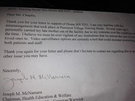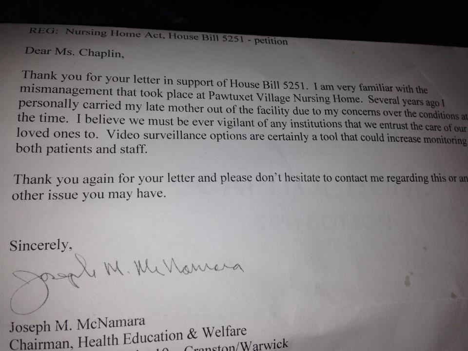 GO TO ALLIANCE FOR SAFE COMMUNTIES PAGE, "ELDER AFFAIRS" TO SEE A YEAR IN REVIEW OF NURSING HOME CARE IN RHODE ISLAND AS WELL AS NATIONAL STATUS...... YOU'LL SEE WHY WE NEED TO PASS THIS LEGISLATION TO PROTECT THE MOST VULNERABLE POPULATION.